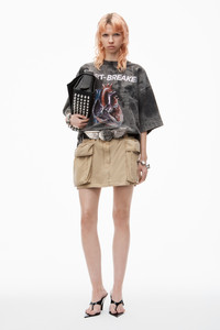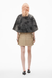Oversize cargo pockets amplify this mini skirt in khaki. It is styled with belt loops, a front fly closure, and back pockets. - belt loops - cargo pockets - front fly closure - 100% cotton - oversize fit - made in China - model is 5’8 and wears a size 2 - 4WC3245061210 composition Body: 71%POLYESTER/29%POLYAMIDE Lining: 100%POLYESTER