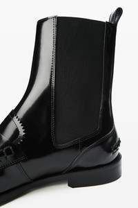 Black spazzolato leather ankle boot crafted with genuine Blake welted construction. Detailed with a metal logo keeper, heat-creased finishing, and a smooth calf leather lining set on a leather outsole. - Black - Round toe - Heat-creased detailing - Upper: calf leather - Lining: calf leather - Outsole: cow leather - Made in Spain - 30126B002001 composition Upper: 100%CALF LEATHER Lining: 100%CALF LEATHER Outsole: 100%COW LEATHER