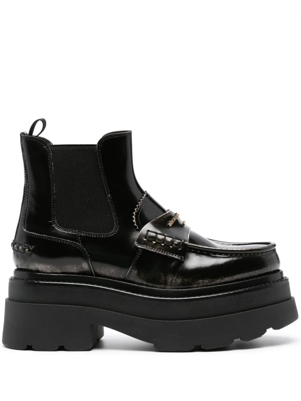 75mm Carter boots Highlights - Black - Calf leather - Distressed effect - Round toe - Moc stitching - Gold-tone logo lettering to the front - Elasticated side panels - Decorative stitching at the back - Pull-tab at the heel - Ankle-length - Branded leather insole - 75mm platform sole - Chunky rubber sole - Slip-on style Imported Composition Leather 100% SIZE & FIT Measurement HEEL 2.75 in(7 cm) HEIGHT 5.11 in(13 cm) PLATFORM 1.96 in(5 cm)
