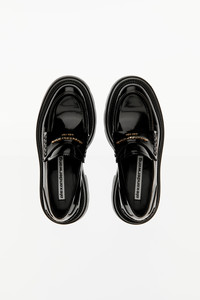 a chunky platform version of our classic carter menswear-inspired loafers with gold metal logo detailing on keepers in black shiny box calf leather - platform height: 75 mm - exterior composition: 100% cow leather - outsole composition: 100% rubber - lining composition: 100% cow leather - made in spain - 30322F023001 composition UPPER: 100%COW LEATHER OUTSOLE: 100%RUBBER LINING: 100%COW LEATHER