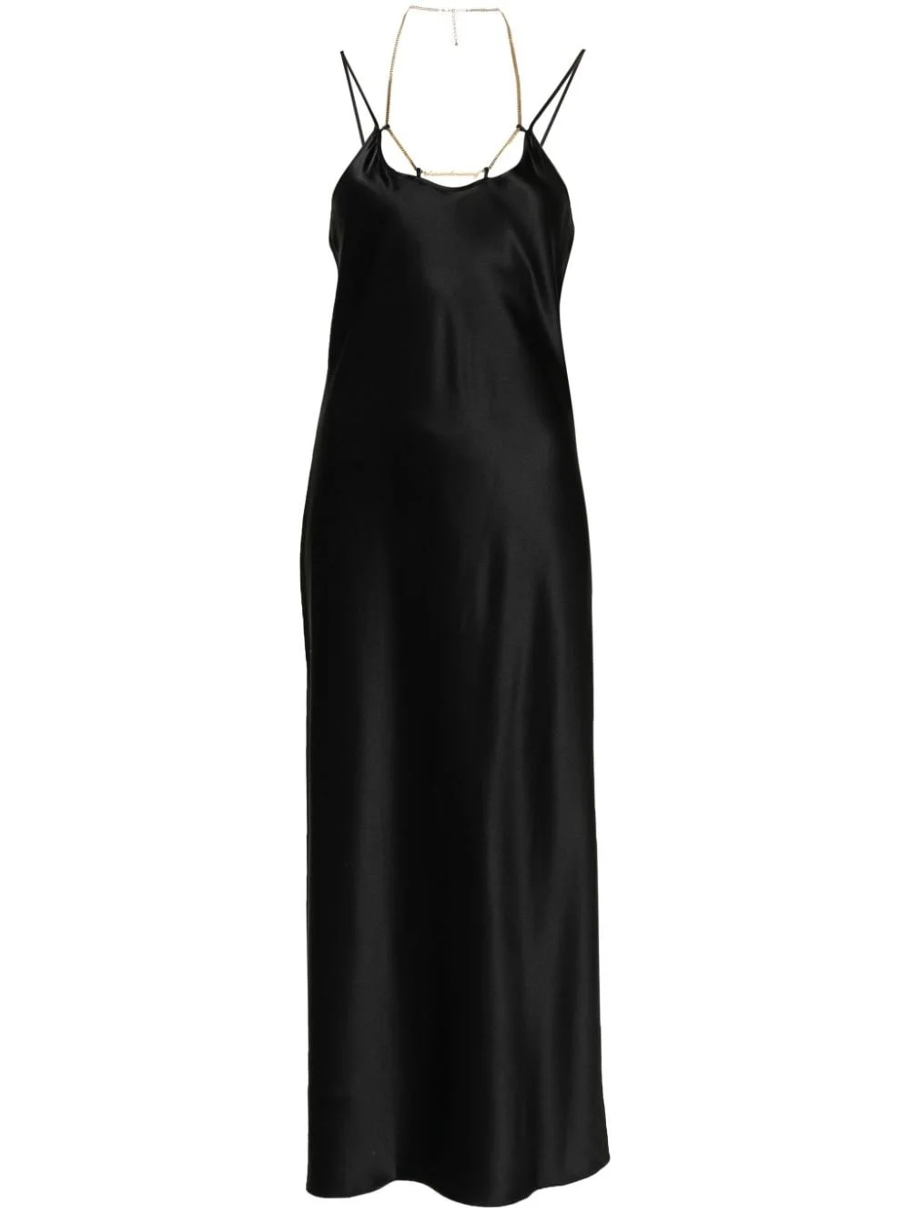 chain-strap silk midi dress Highlights - Black - Silk - Gold-tone hardware - Scoop neck - Logo charm - Thin shoulder straps - Concealed rear zip fastening - Calf-length - Straight hem Imported Composition Silk 100% SIZE & FIT Model measurements Height 5 ft 11 in(1.8 m) Bust/Chest 31.49 in(80 cm) Hips 36.22 in(92 cm) Waist 25.59 in(65 cm) FittingInformation Designed for a slim fit that sits just away from the body offering a close yet comfortable fit The adjustable shoulder straps allow for a preferred fit when worn Made from a midweight non-stretch fabric This piece fits true to size – take your usual size Washing instructions Dry Clean Only