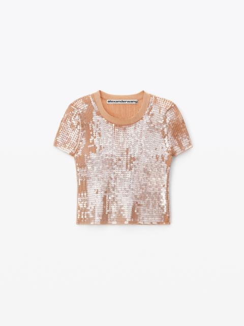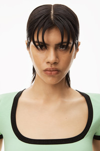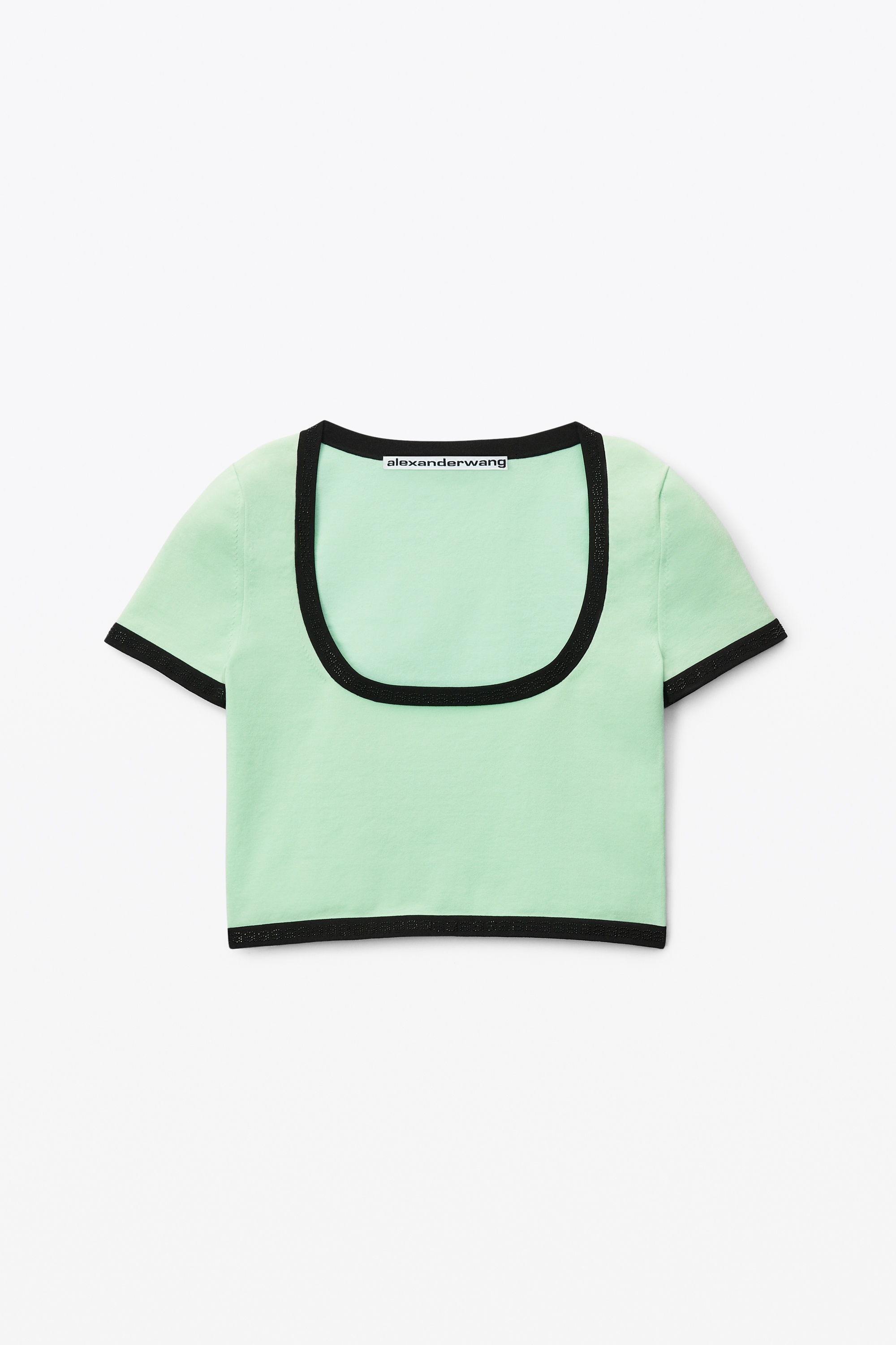 CONTRAST SCOOP NECK TEE IN COMPACT NYLON