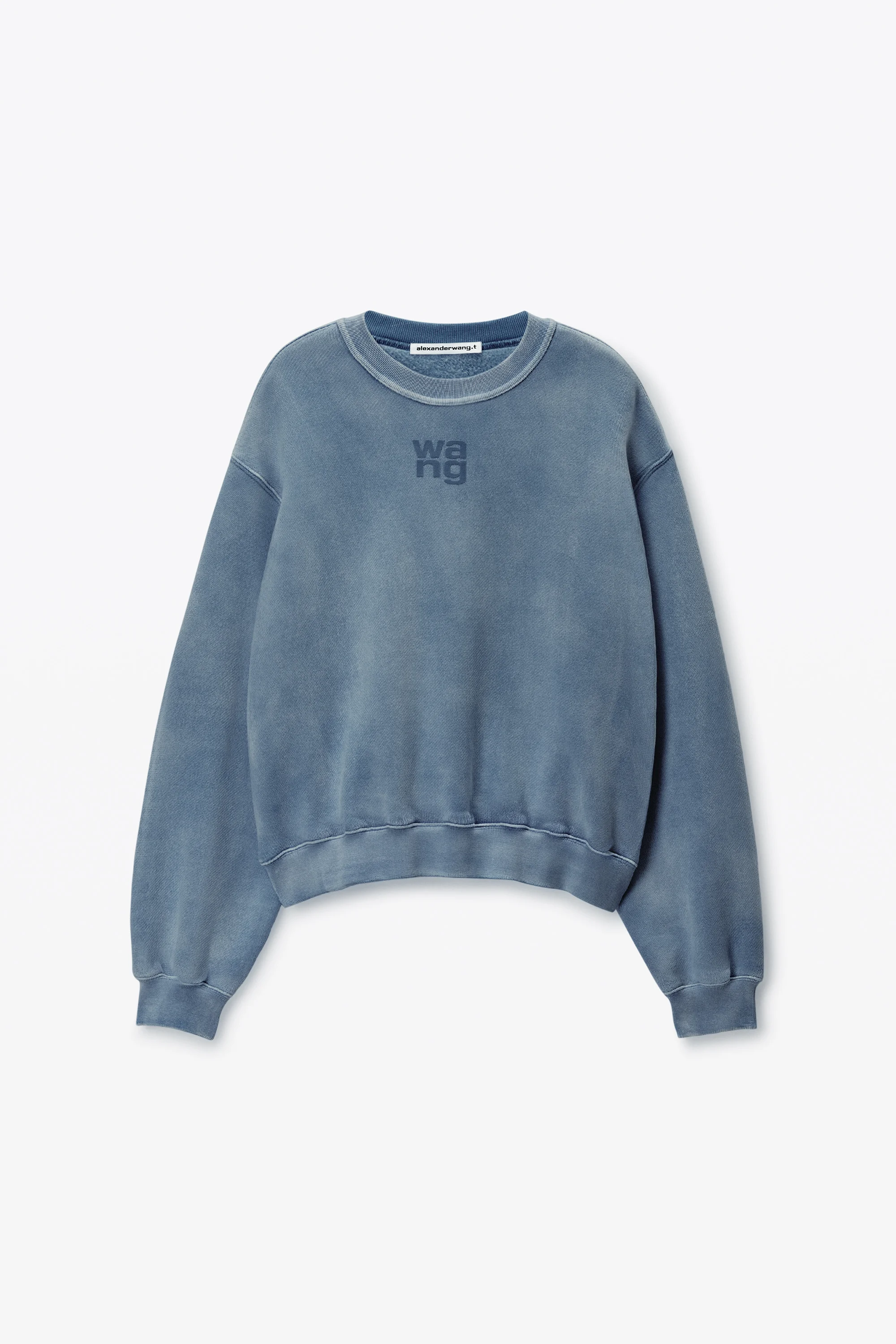 Featuring a stacked logo puff print, this brushed terry sweatshirt is garment-dyed, resulting in a unique blue fade effect. - crewneck - long sleeves - ribbed trim - body composition: 75% cotton/25% polyester - material 2: 99% cotton/1% elastane - made in china - model is 5'11" and wears a size s - 4CC3241518402D composition Body: 75%COTTON/25%POLYESTER Rib: 99%COTTON/1%ELASTANE
