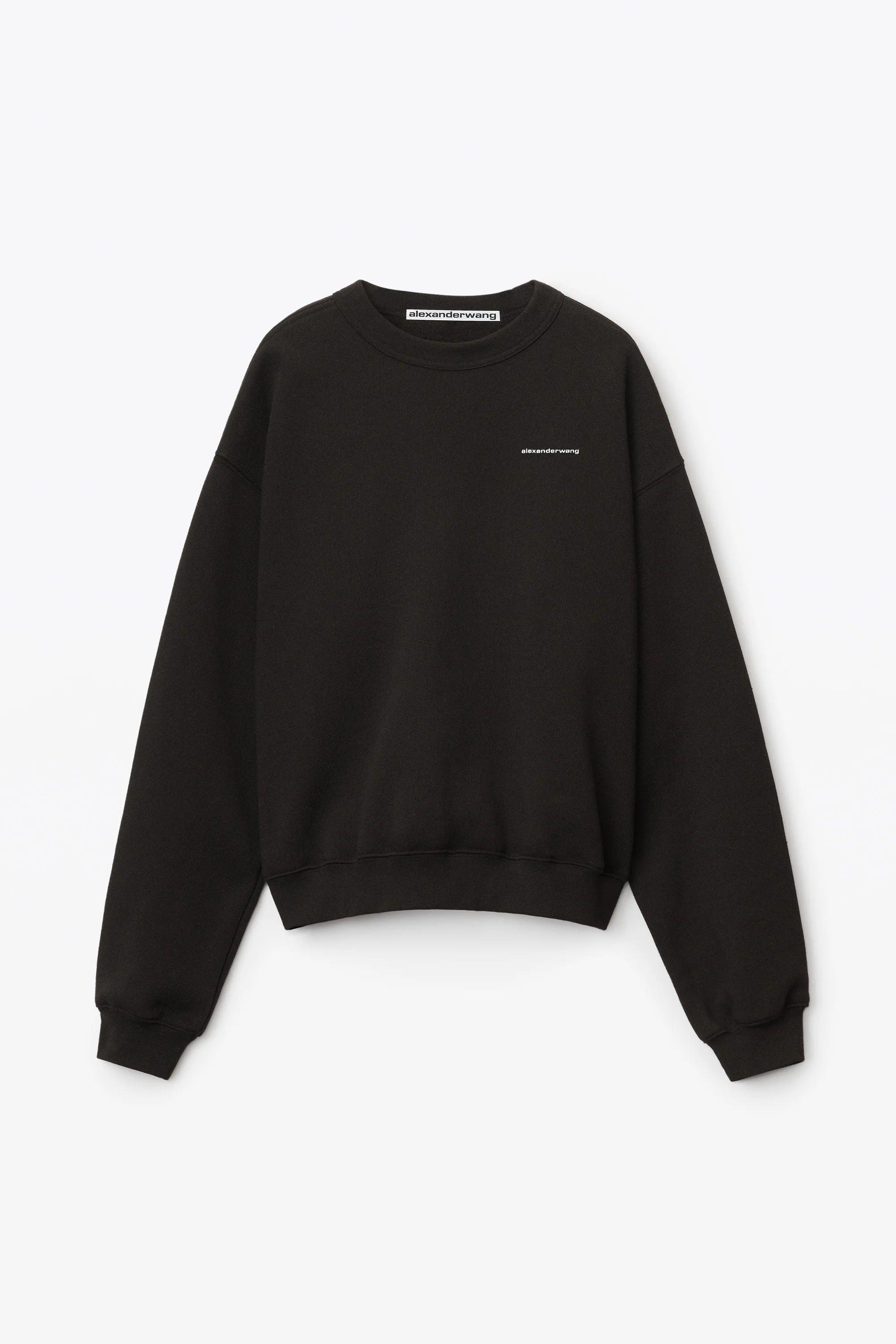 classic long-sleeve crewneck pullover with printed contrast logo at chest in black dense fleece - relaxed unisex fit - bottom hem hits at hips - ribbed neckline, bottom hem and sleeve cuffs - composition: 68% cotton, 32% polyester - made in china - model is 5'10" and wears size s - UCC2221530001