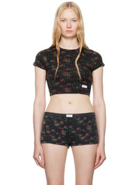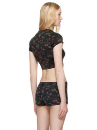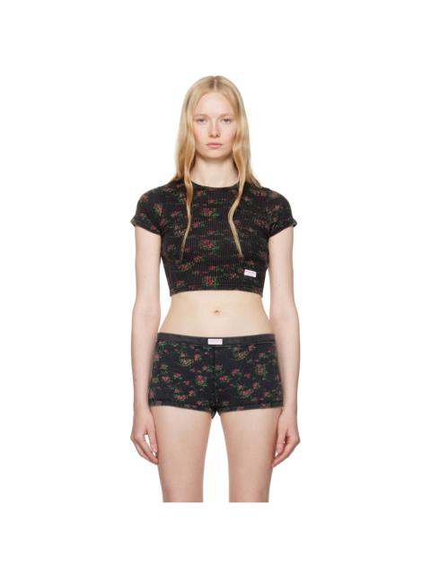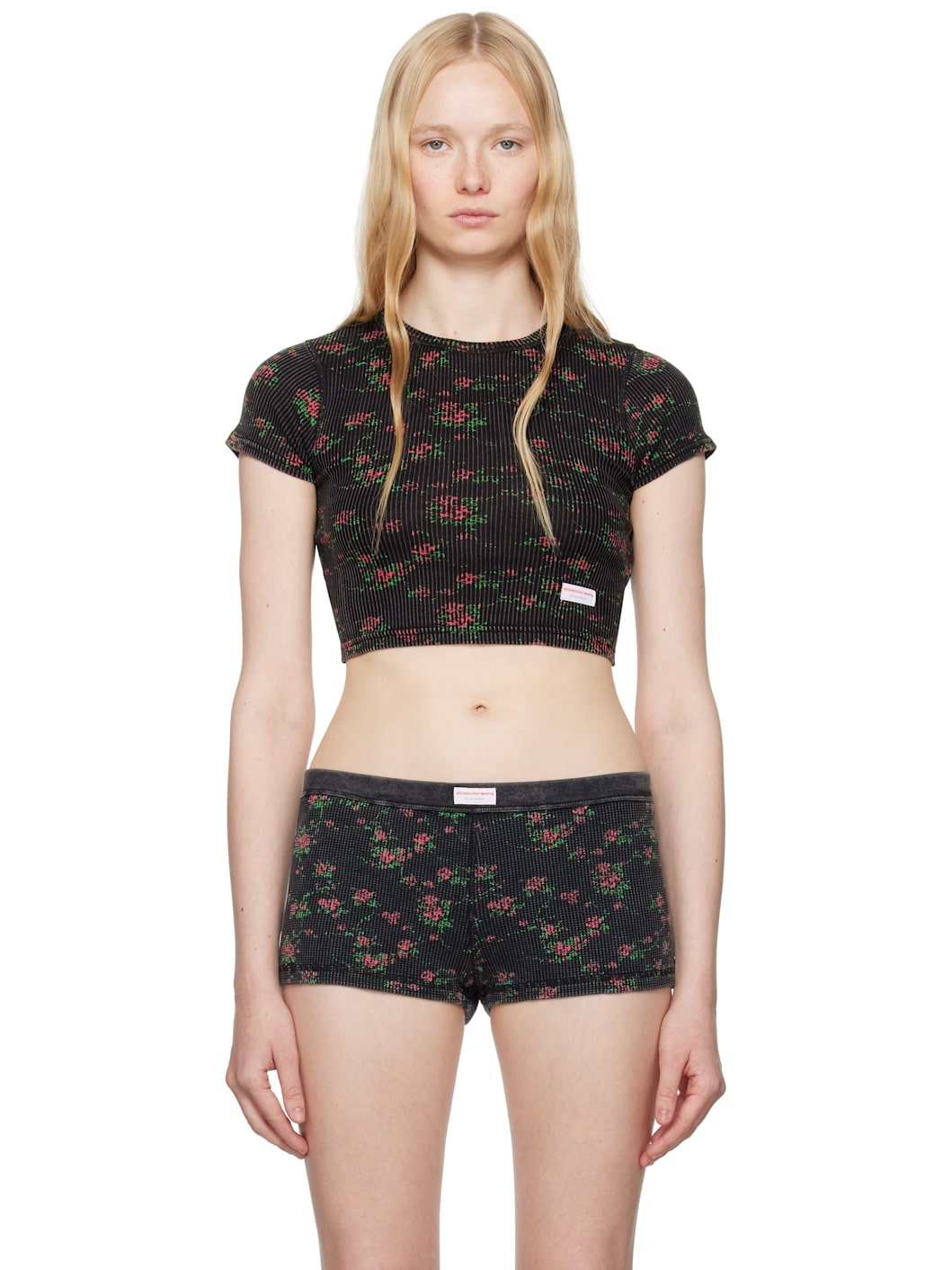 Rib-knit cotton T-shirt. Fading and printed floral pattern throughout. · Crewneck · Logo patch at front hem · Cropped hem Supplier color: Washed black/Multi 100% cotton. Made in China 251187F110027