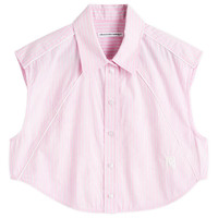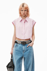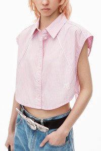 Cropped Sleeveless Button-Up Shirt in Cotton