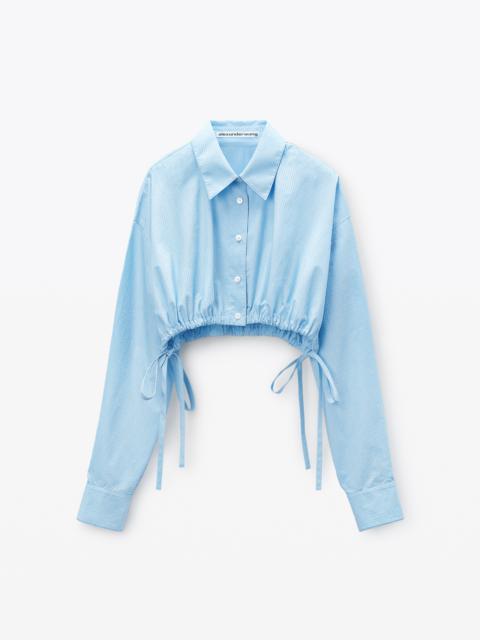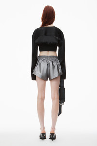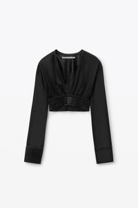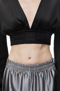 a v-neckline shapes this satin crop top in black. with long sleeves and an elastic band under the bust, this lightweight style has a subtle sheen. - body: 100% viscose - made in china - model is 5'10 and wears a size s - 1WC3241932001 composition Body: 100%VISCOSE