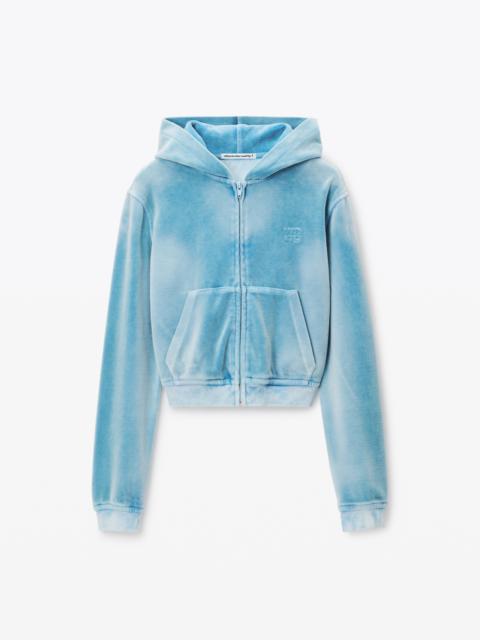 Cropped Zip-Up Hoodie with Crystal Hotfix Drawcord