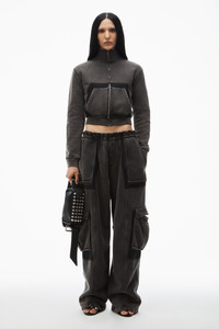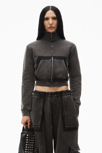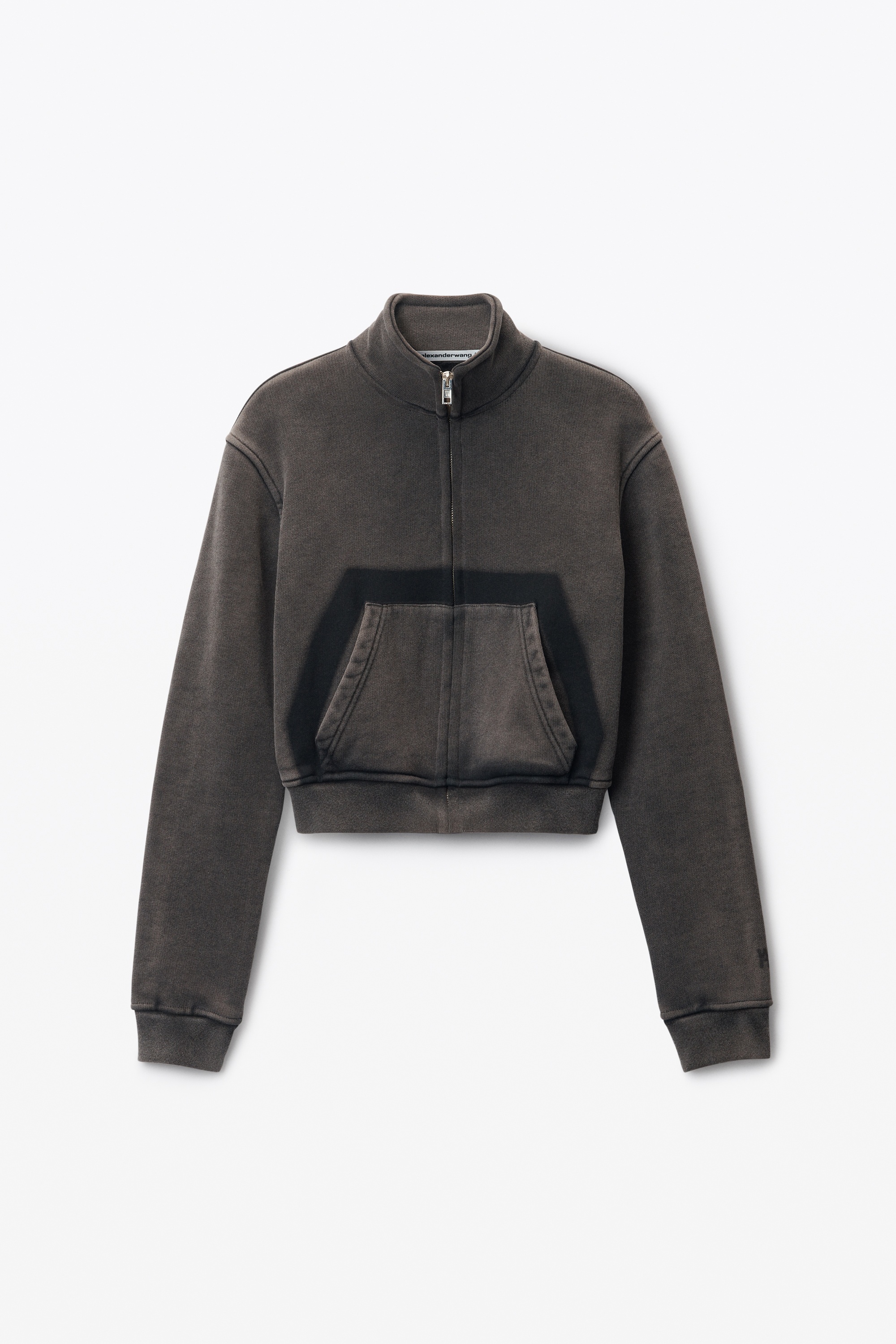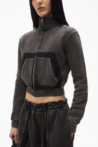 a shadow design outlining the kangaroo pocket accents this cotton terry cropped jacket in a shadow wash. with its cropped, relaxed fit and logo detailing at the cuff, this layering separates fastens with a wavy zip closure. - zip closure - kangaroo pockets - pulls over - body composition: 100% cotton - made in portugal - model is 5’10" and wears a size s - 4cc4242100062a composition Body/Exterieur: 100%COTTON Rib: 99%COTTON/1%ELASTANE