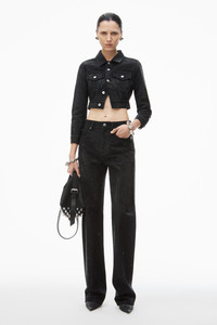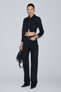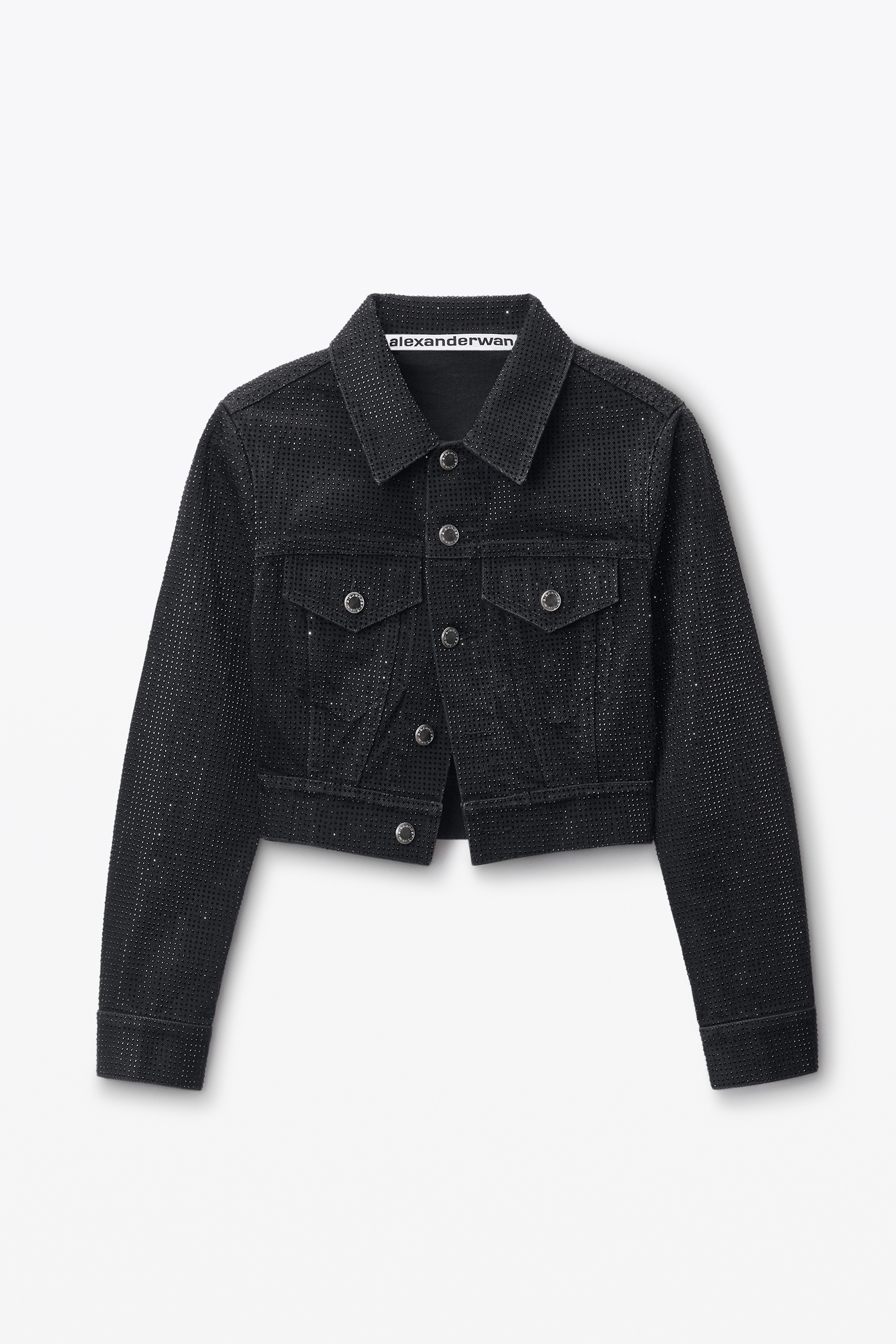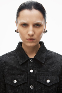 black crystal denim hotfix animates this shrunken trucker jacket in a tonal faded wash. with a logo patch at the back, this denim outerwear staple is styled with chest pockets, paneling, and topstitching details. - shirt collar - button closure - five-pocket style - 100% cotton - made in china - model is 5'10" and wears a size s - 1wc4242430011 composition Body/Exterieur: 100% COTTON
