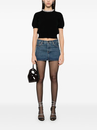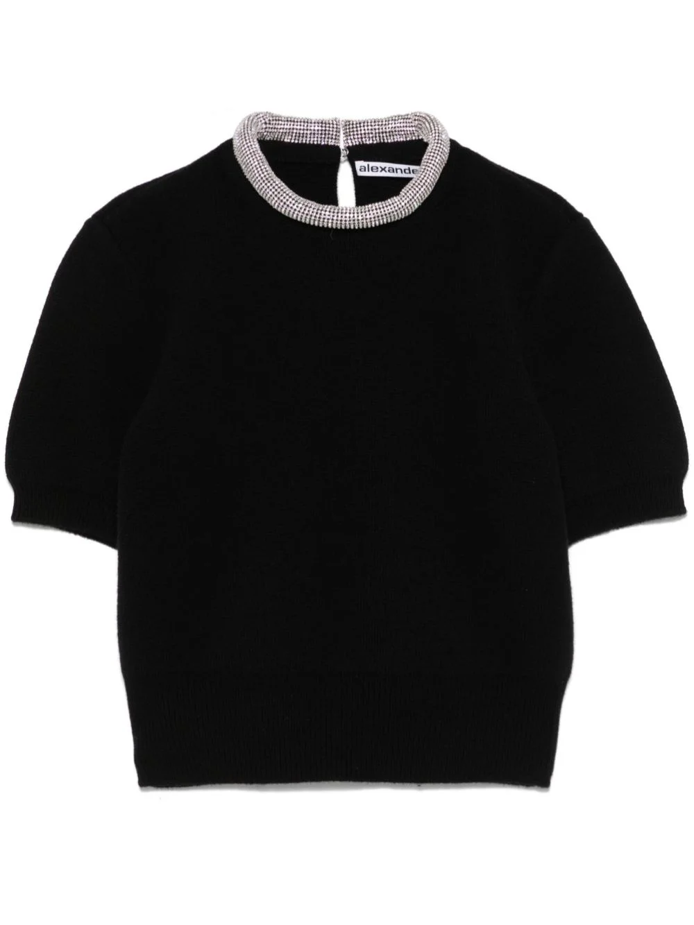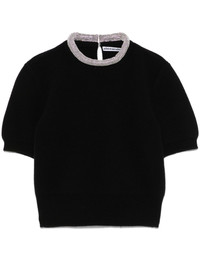 crystal-embellished T-shirt Highlights - Black - Crew neck - Short sleeves - Ribbed cuffs and hem - Cropped Imported Composition Wool 87%, Cashmere 7%, Polyamide 5%, Elastane 1% SIZE & FIT Model measurements Height 5 ft 10 in(1.78 m) Bust/Chest 33.85 in(86 cm) Hips 36.61 in(93 cm) Waist 26.77 in(68 cm) Measurement SLEEVE LENGTH 9.05 in(23 cm) LENGTH 17.32 in(44 cm) BUST 34.64 in(88 cm) Shoulder Width 13.77 in(35 cm) FittingInformation Designed for a relaxed fit, this piece allows for comfort and movement when worn Cropped in length Made with a midweight knit, this piece offers some stretch
