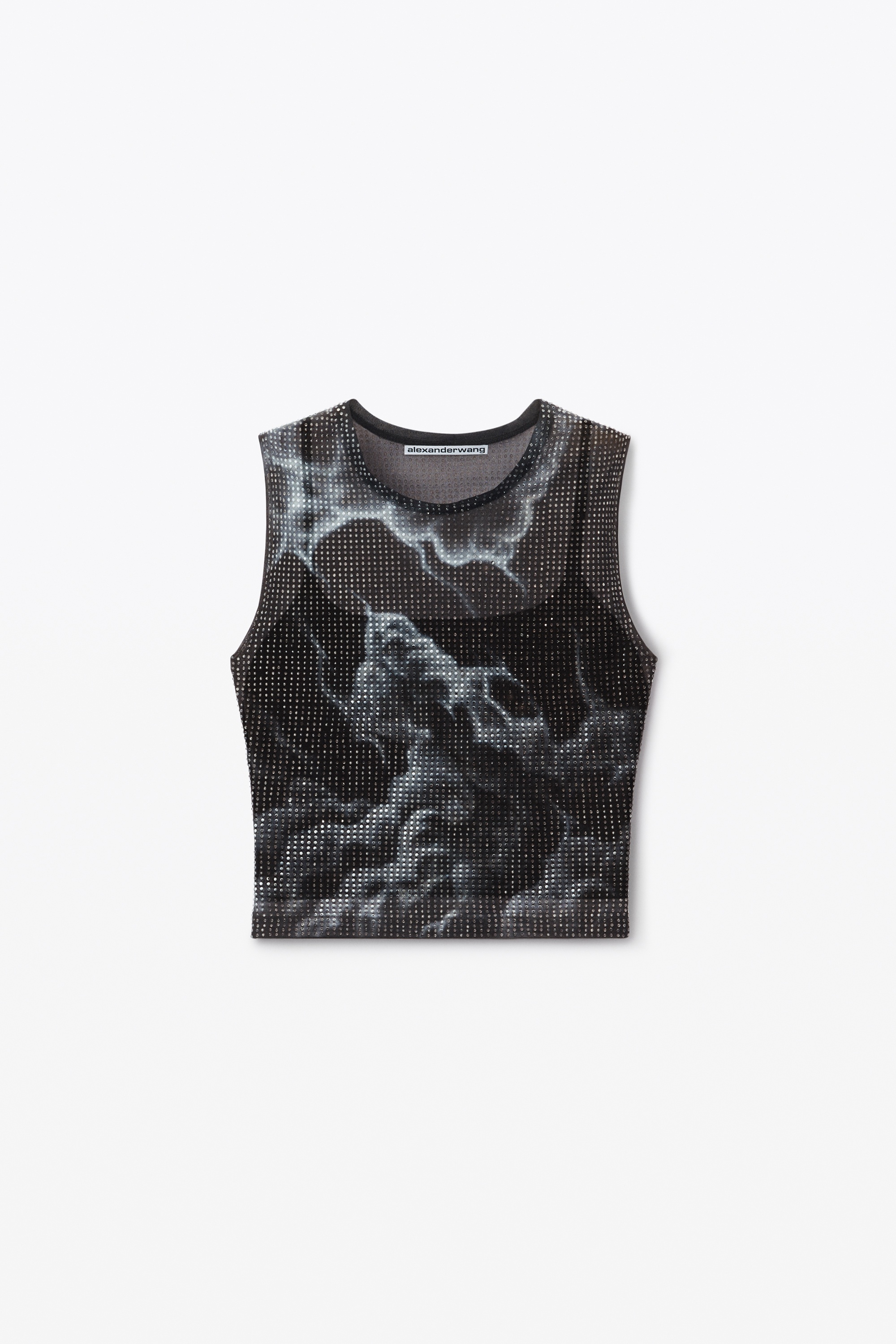 crystal hotfix cloud-print tank in organza jersey