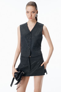 Wool mohair suiting in grey defines this low-rise skort detailed with an allover hotfix finish. Side slits, welt pockets, and hidden undershorts balance utility with a sharp mini length. - Grey - Low-rise with fly front - Side seam slits - Welt pockets at back - Undershort with inseam pockets - lined - Body composition: 77% wool / 23% mohair - Lining 1: 77% wool / 23% mohair - Lining 2: 100% viscose - Made in China - Model is 5'11" and Wears a Size 4 - 1WC1265376020 composition Body: 77%WOOL (OVIS ARIES ARIES)/23%MOHAIR Lining: 77%WOOL (OVIS ARIES ARIES)/23%MOHAIR Lining 2: 100.0%: 100%VISCOSE