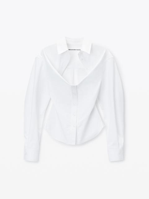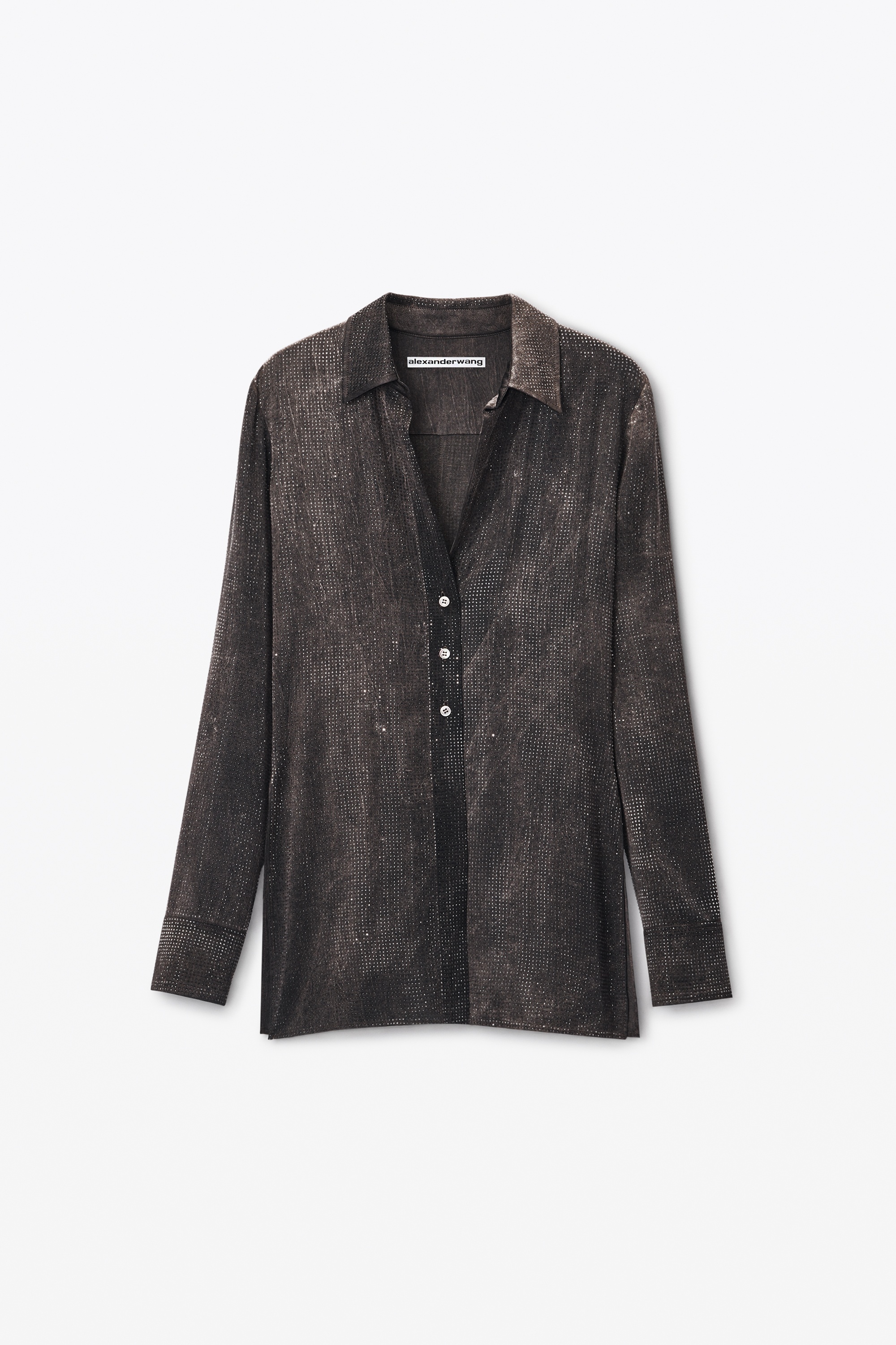 Crystal hotfix illuminates this slim-fit shirt with an artisanal charcoal wash that reveals veining and a creased design. - mockneck - body composition: 100% viscose - made in china - model is 5'10" and wears a size 4 - 1WC1251998096A composition Body/Exterieur: 100%VISCOSE