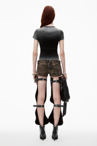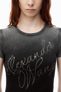 A crystal hotfix logo illuminates this cotton ribbed T-shirt. This ash-grey bodycon top uses a specialized wash to reveal a stark graphic look. - crewneck - body composition: 100% cotton - made in China - shrunken fit, hits at waist - model is 5’11 and wears a size S - 1CC3241920022A composition Body: 100%COTTON