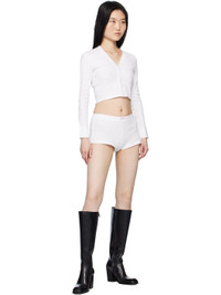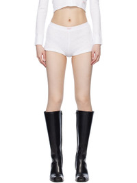Waffle-knit stretch cotton shorts. Crystal-cut appliques throughout. · Rib-knit elasticized waistband · Logo patch at front waistband Supplier color: White