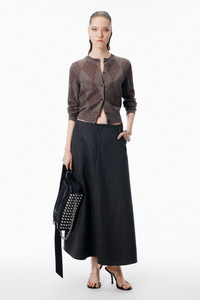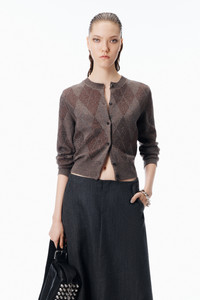 Brown wool blend cardigan in a shrunken long-sleeve silhouette. Embellished with 28,000 crystals in an allover argyle pattern across the body and sleeves, and finished with tonal corded “aw” embroidery above the hem. Rib trims frame the edges for a smooth, close fit. - brown - ribbed crewneck and trim - long sleeves - button closure - shrunken close fit - Body composition: 92% wool/7% polyamide/1% elastane - Trim: 93% wool/6% polyamide/1% elastane - model is 5'11" and wears a size s - made in china - 1KC1263028200 composition Body: 92%WOOL (OVIS ARIES ARIES)/7%POLYAMIDE/1%ELASTANE Trim: 93%WOOL (OVIS ARIES ARIES)/6%POLYAMIDE/1%ELASTANE