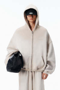 Washed khaki oversized hoodie in organic terry, finished with an artisanal solar wash and clear allover tossed hotfix. Designed with dropped shoulders and tonal screenprint at the chest for a low-key signature effect. - Washed Khaki - Hood - Dropped shoulders - Two-way front zip closure - Kangaroo pocket - Rib cuffs and hem - Body composition: 75% Cotton / 25% Polyester - Trim: 99% Cotton / 1% Elastane - Female Model is 5'11" and Wears a Size S - Male Model is 6'1" and wears a size M - Made in China - UCC1262300216A composition Body: 75%COTTON/25%POLYESTER Rib Trim: 99%COTTON/1%ELASTANE