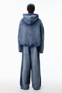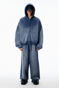 Washed navy oversized hoodie in organic terry, finished with an artisanal solar wash and clear allover tossed hotfix. Designed with dropped shoulders and tonal screenprint at the chest for a low-key signature effect. - washed navy - Hood - Dropped shoulders - Two-way front zip closure - Kangaroo pocket - Rib cuffs and hem - Body composition: 75% Cotton / 25% Polyester - Trim: 99% Cotton / 1% Elastane - Female Model is 5'11" and Wears a Size S - Male Model is 6'1" and wears a size M - Made in China - UCC1262300421B composition Body: 75%COTTON/25%POLYESTER Rib Trim: 99%COTTON/1%ELASTANE