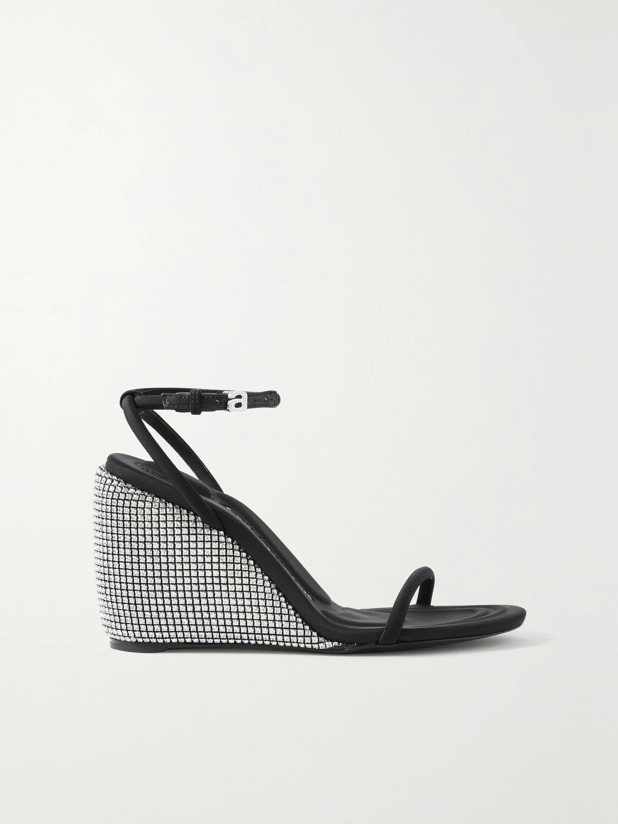 Alexander Wang's 'Dahlia' sandals are re-imagined in a wedge silhouette that's covered in light-catching crystals to complement the signature 'a' buckle. They're designed with slim stretchy straps trimmed in durable leather. Wear yours with mini or cropped hemlines.