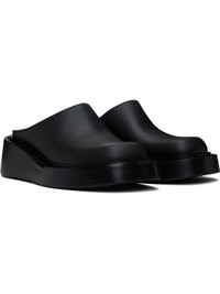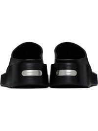 Buffed leather slip-on loafers in black. · Square toe · Logo plaque at heel · Buffed leather lining · Logo printed at padded leather footbed · Stacked leather platform midsole · Treaded rubber sole · Platform: H2" Supplier color: Black Upper: leather. Sole: rubber. Made in Spain 251187F121006