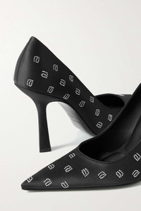 EDITORS'NOTES Alexander Wang's 'Delphine' pumps are decorated with sparkling crystals arranged in the label's signature 'a' logos. They're made from satin and have sleek, pointed toes and 105mm heels. SIZE & FIT - Fits true to size, take your normal size - Italian sizing DETAILS & CARE - Heel measures approximately 105mm/ 4 inches - Black satin - Slips on