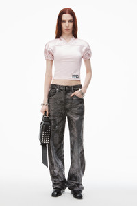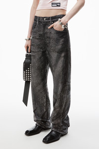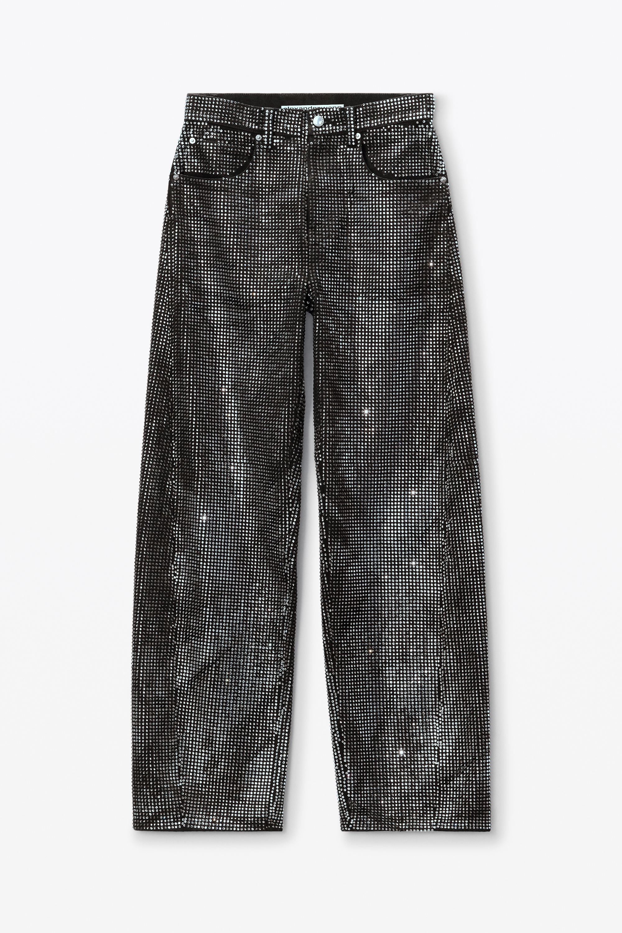 Distressed hotfix crystals painted to evoke whiskering illuminate these black denim jeans. Construction details, including a five-pocket design, belt loops, and a fly front closure, complete this high-waist style. - body: 100% cotton - made in china - model is 5'10 and wears a size 27 - 1WC3244376011 composition Body: 100%COTTON