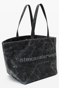 a distressed grey smoke leather tote with a contrast brush-off effect and tonal raised logo at the center front. detailed with interior compartments, a tie-top closure, and fixed shoulder straps for structured everyday carry. - shoulder straps - main and laptop compartments, front wall pockets - goatskin - made in Vietnam - 20425T75L038 composition Body: 100%GOATSKIN (CAPRA AEGAGRUS HIRCUS ) Lining: 100%POLYESTER