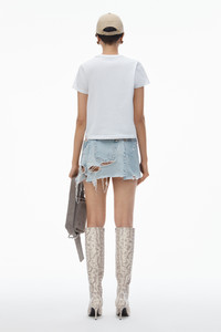 Distressed Logo Shrunken Tee in Cotton Jersey