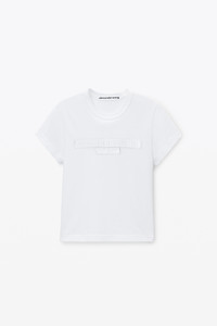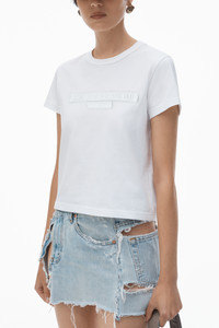 This white washed shrunken tee showcases a distressed logo applique at the chest. - crewneck - body composition: 100% cotton - trim: 100% cotton - model is 5'10.5" and wears a size s - made in china - 1CC1251991100 composition Body/Exterieur: 100%COTTON Rib Trim: 100%COTTON