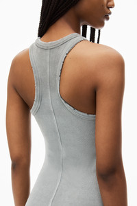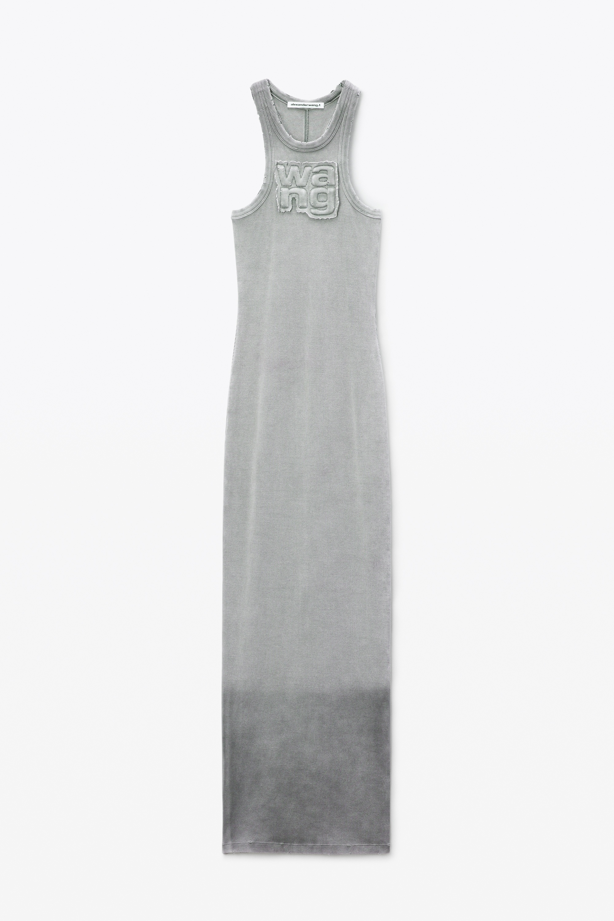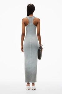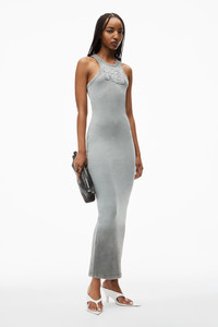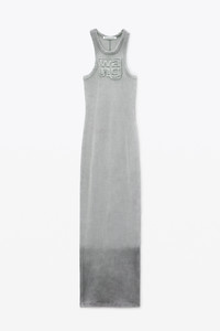 Distress-edged trim characterizes this cotton rib maxi dress in light grey. Logo detailing at the chest and an acid-dyed rib elevate this body-skimming silhouette. - round neck - sleeveless - body composition: 98% cotton/2% elastane - relaxed fit - made in China - model is 5’9 and wears a size S - 4CC3246257034A composition Body: 98%COTTON/2%ELASTANE