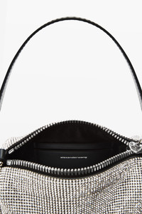 Fine crystal mesh draped over a lamb Nappa body. Designed with two interchangeable straps—top handle and crossbody—both logo-embossed. Finished with a jacquard logo lining and an interior card pocket. - white - top zip opening with 1 main compartment - interior back wall card pocket - jacquard logo lining - dimensions: 17 × 7 × 18.5 cm (6.7 × 2.8 × 7.3 in) - top handle strap: 33.5 cm (13.2 in) - crossbody strap: 105 cm (41.3 in) - Made in Vietnam - 20126P90M100 composition Body: 80%CRYSTAL GLASS/20%COWHIDE Lining: 100%POLYESTER