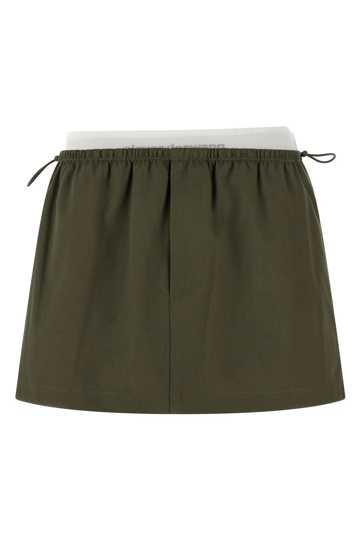 cod. 1WC1265382305 Cotton mini skirt, double layer waist with contrast logo elastic band insert, medium waist, trompe l'oeil flap, pockets, drawstring at the waist, unlined. Color: Green Size & Fit: true to size fit Composition: 100% cotton Made in: Portugal