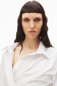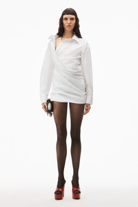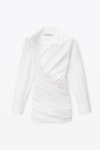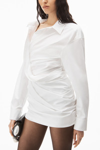 deconstructed button down inspired collared dress with draped back and wrapped front - fitted - hem hits at mid thigh - invisible zipper at left - stretch mesh underneath back drape - composition: 100% cotton - made in china - model is 5' 11" and wears a size 2 - 1WC3236598100