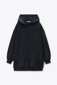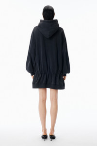 washed black mini hoodie dress in organic dry terry. Designed with a cinched drop waist and exaggerated flared hem for dramatic proportion play. - Washed black - Kangaroo pocket at front - Drawcord waistband - Pulls over - Side seam pockets - Body Composition: 100% Cotton - Body Composition: 100% Cotton - Made in Portugal - Model is 5'11" and Wears a Size S - 4CC1261176011 composition Body: 100%COTTON Rib Trim: 100%COTTON Lining: 100%COTTON