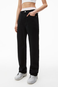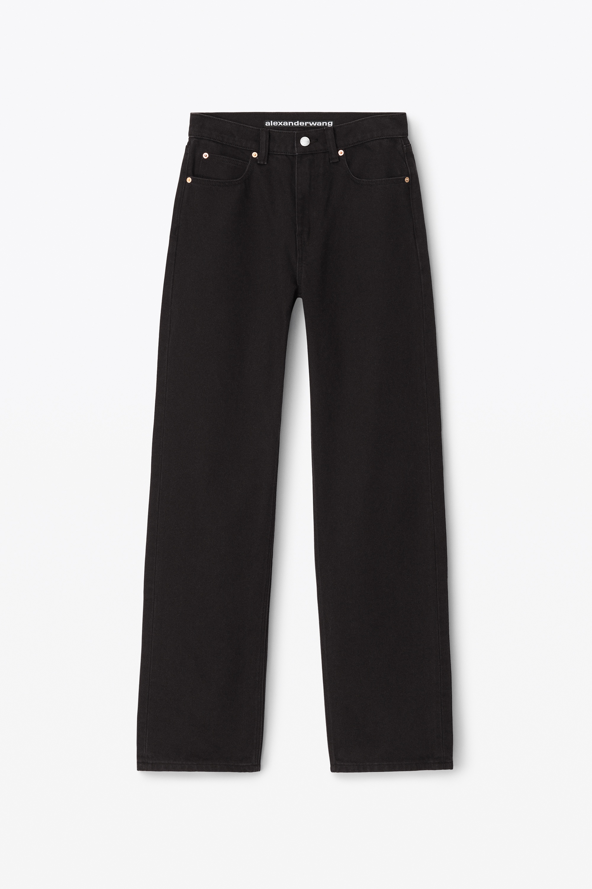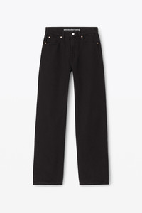 Washed black denim EZ mid rise jean with slouchy silhouette, straight wide leg and 5-pocket detailing - relaxed slouchy fit - zipper fly closure - tan logo patch - full length - unlined - composition: 100% cotton - made in china - model is 5'11" and wears size 26 - 4DC4234178011
