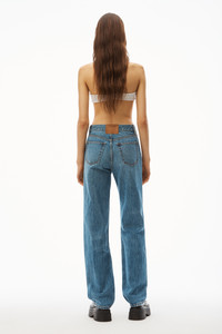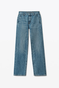 mid-rise straight-leg jeans with invisible zip pockets at sides and classic denim pockets at back in indigo washed denim - relaxed fit - full-length - zip front closure - composition: 100% cotton - made in china - model is 5'10" and wears size 26 - 4DC3224140473