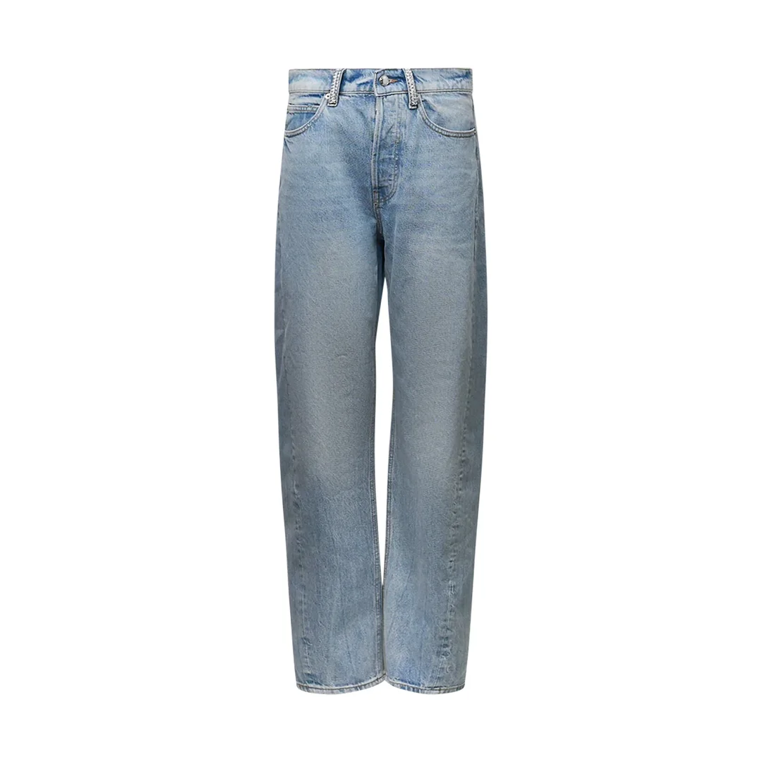 300051404LBL-24 / E64DC1264943/00/470C - Mid-rise waistband - Button fly closure - Five-pocket styling - Relaxed wide-leg fit - Light blue wash - Premium cotton denim construction Alexander Wang Float Mid Rise Relaxed Jeans delivers contemporary denim craftsmanship with an effortlessly cool silhouette. Crafted from premium cotton denim in a versatile light blue wash, featuring a comfortable mid-rise waist and relaxed fit through the leg. The wide-leg construction and lived-in aesthetic create the perfect balance of comfort and modern street style.