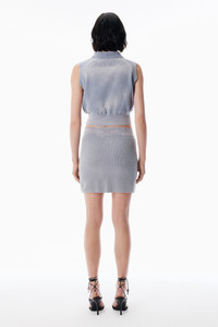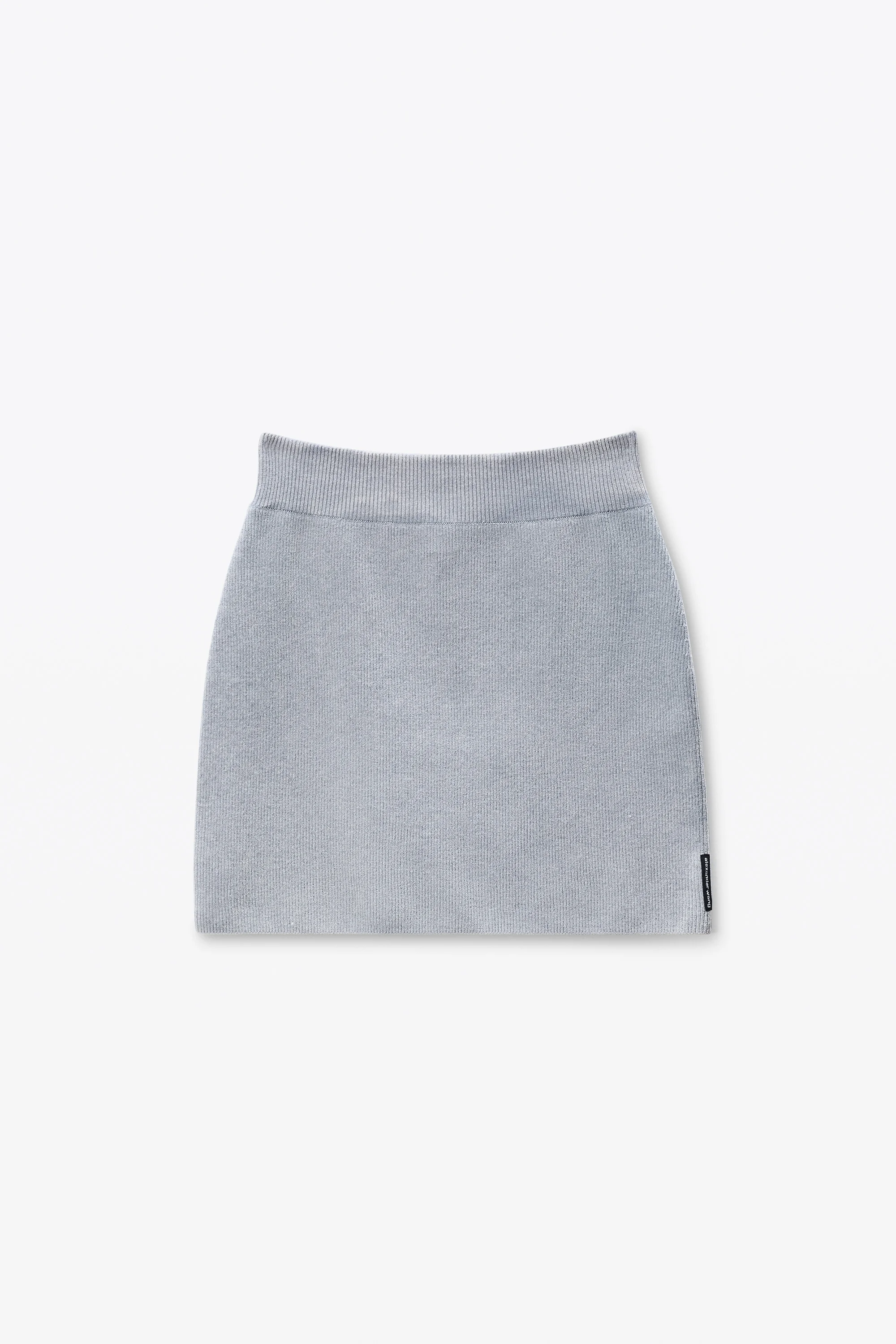This knit miniskirt features a cotton-blend chenille with sweater-rib trim in a grey acid wash, revealing heightened tonal contrast in the grey colorway. Crafted from breathable, midweight yarn, it’s a versatile transseasonal piece. - elastic waistband - pull-on style - hits at thigh - body composition: 88% cotton/10% polyamide/2% elastane - made in china - model is 5'11" and wears a size s - 1KC3255067057 composition Body: 88%COTTON/10%POLYAMIDE/2%ELASTANE Trim: 89%COTTON/10%POLYAMIDE/1%ELASTANE Trim 2: 72%COTTON/26%POLYAMIDE/2%ELASTANE