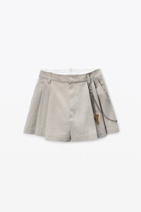 Featuring a topstitched, raw-cut waistband, this high-waisted mini short is designed with a double-pleated front and a detachable chain belt that clips from front to back. Pressed creasing and a stone garment wash enhance its vintage look. - zip fly - side-slash hip and back pockets - front fly - body composition: 74% cotton/26% polyamide - made in china - model is 5’11" and wears a size 4 - 1WC3254884051 composition Body: 74%COTTON/26%POLYAMIDE