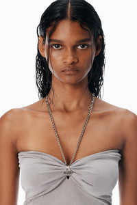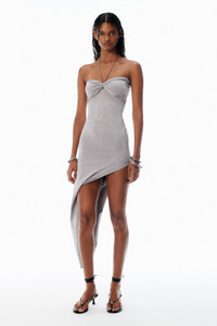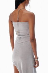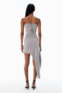 Crafted from sueded jersey in cement, this asymmetric dress features detachable chain-link hardware with logo-detailed key pendants gracefully draped at the back - sweetheart neckline - sleeveless - key pendant necklace - body composition: 89% lyocell/11% elastane - made in china - model is 5'11" and wears a size s - 1CC3256849926 composition Body: 89%LYOCELL/11%ELASTANE