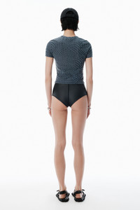 Allover logo jacquard complements the plush terrycloth fabrication of this shrunken baby tee in graphite. - crewneck - cap sleeves - button placket - body composition: 96% polyester/4% elastane - made in china - model is 5'11" and wears a size s - 4CC3251097531 composition Body: 96%POLYESTER/4%ELASTANE