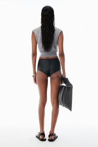 A detachable logo nameplate at the neck characterizes this deep V-neck grey top, with self-edge trim at the neckline for a cut-off effect. Crafted from superfine RWS merino, this style features a relaxed, fine-gauge, structured-stitched finish with sweater-rib trim. - V-neck - relaxed fit, hits above waist - body composition: 100% wool - made in china - model is 5'10" and wears a size s - 1KC3251003030 composition Body: 100%WOOL (OVIS ARIES ARIES) Trim: 81%WOOL (OVIS ARIES ARIES)/17%POLYAMIDE/2%ELASTANE