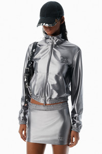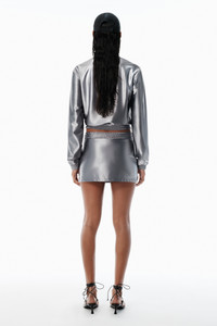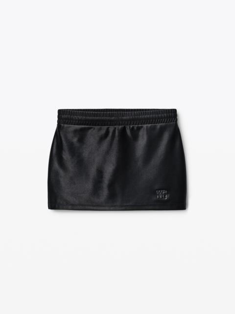 accentuated by side slits, this low-waist satin faille miniskirt in Alloy features a stacked logo at the hem and is fastened with an interior drawcord. - drawcord waistband - body composition: 92% polyester/8% elastane - made in china - model is 5'11" and wears a size s - 4CC3254920041 composition Body: 92%POLYESTER/8%ELASTANE