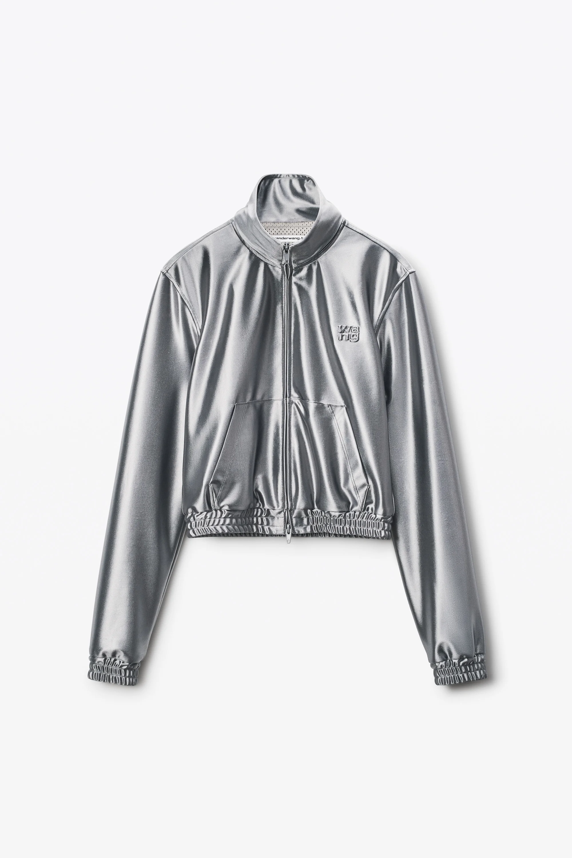 logo embroidery at the chest and sleeve accent this shrunken two-way zip-up jacket in alloy, featuring dropped shoulders and stacked sleeves. - hood - long sleeves - two-way zip closure - body composition: 92% polyester/8% elastane - lining: 100% polyester - made in china - model is 5'11" and wears a size s - 4CC3252682041 composition Body: 92%POLYESTER/8%ELASTANE Lining: 100%POLYESTER