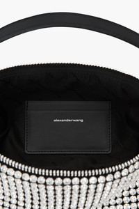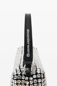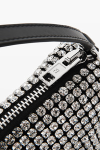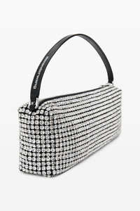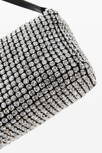 ELONGATED RECTANGULAR SHAPED BAG ALL-OVER EMBELLISHED IN CRYSTAL MESH - LEATHER STRAP HANDLE WITH WHITE PRINTED EMBOSS/DEBOSS LOGO - METAL TOP ZIPPER CLOSURE - one MAIN COMPARTMENT and two CARD SLOT PATCH POCKETS - jacquard logo lining - composition: 80%CRYSTAL GLASS/20%COWHIDE - made in vietnam - 20124P02M100 composition Body: 80%CRYSTAL GLASS/20%COWHIDE Lining: 100%POLYESTER
