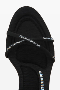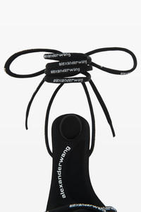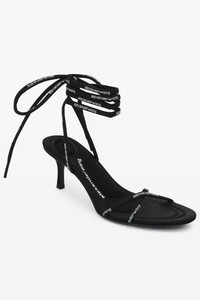 Wrap-around logo-detailed shoelaces define this black high-heel sandal. This pump sits on a 65mm heel, enhanced by our signature high-frequency footbed, plus a cow leather outsole. - open toe - upper: 100% polyester - outsole: 100% cow leather - made in china - 30224S009001 composition Upper: 100%POLYESTER Outsole: 100%COW LEATHER