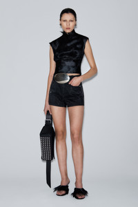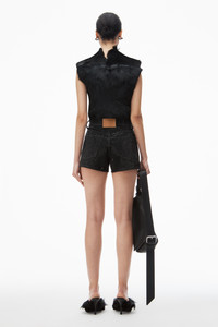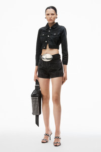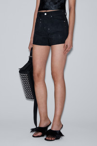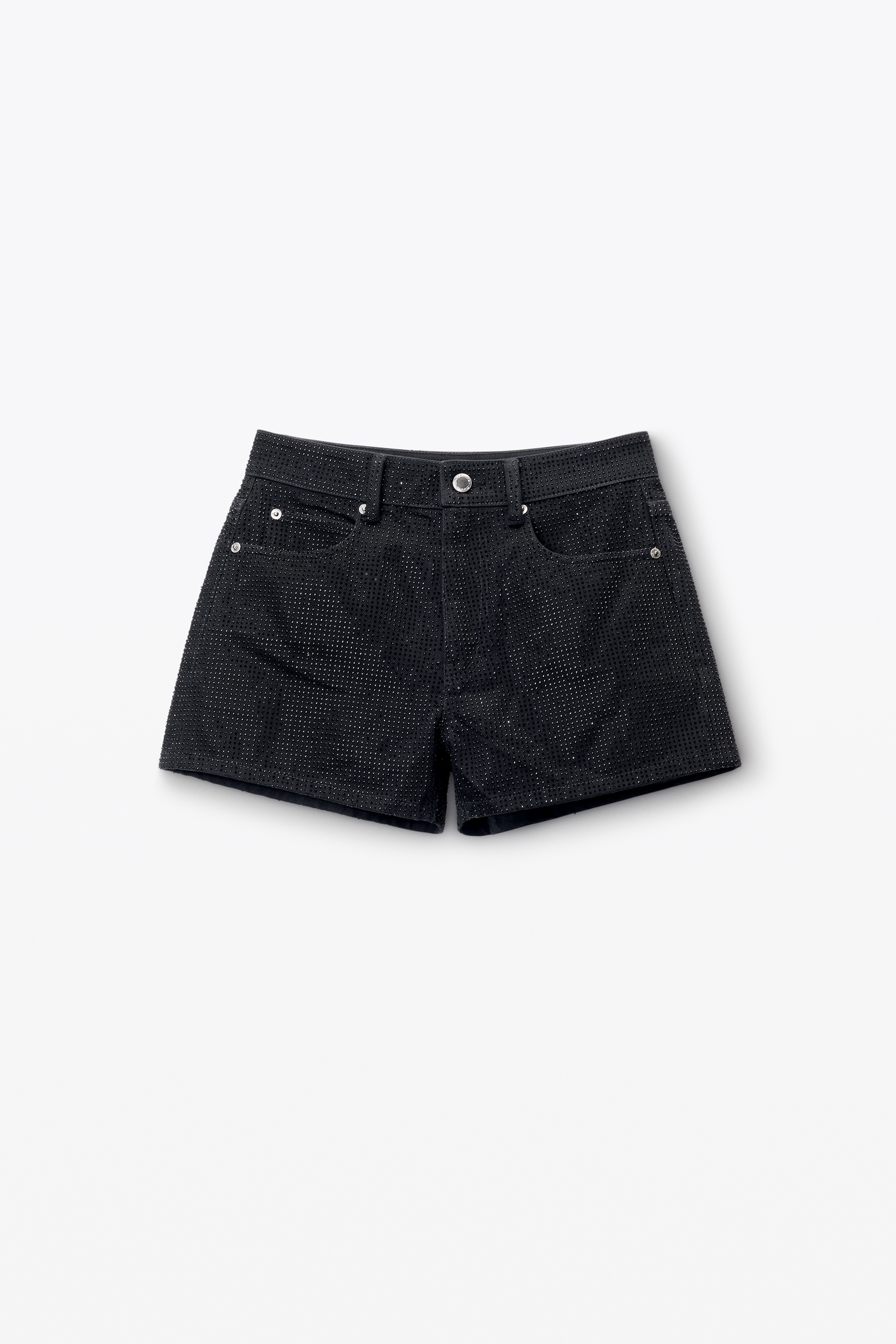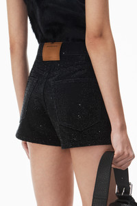 black crystal hotfix illuminates these shorty high-rise shorts in cotton denim. it is detailed with five-pocket styling and fastened by a zip fly and button closure. - belt loops - five-pocket style - zip fly, button closure - body composition: 100% cotton - made in china - model is 5’9 and wears a size 26 - 1wc4244431011 composition Body/Exterieur: 100% COTTON