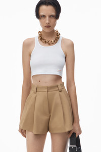 This double-pleated chino short features a flared silhouette and hits at the upper thigh. - belt loops - welt pockets - zip fly, button closure - body composition: 100% cotton - lining: 100% polyester - model is 5'10.5" and wears a size 4 - made in china - 1WC1254807282 composition Body/Exterieur: 100%COTTON Lining: 100%POLYESTER