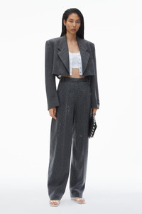 High Waist Pant in Wool Twill with Clear Bead Hotfix